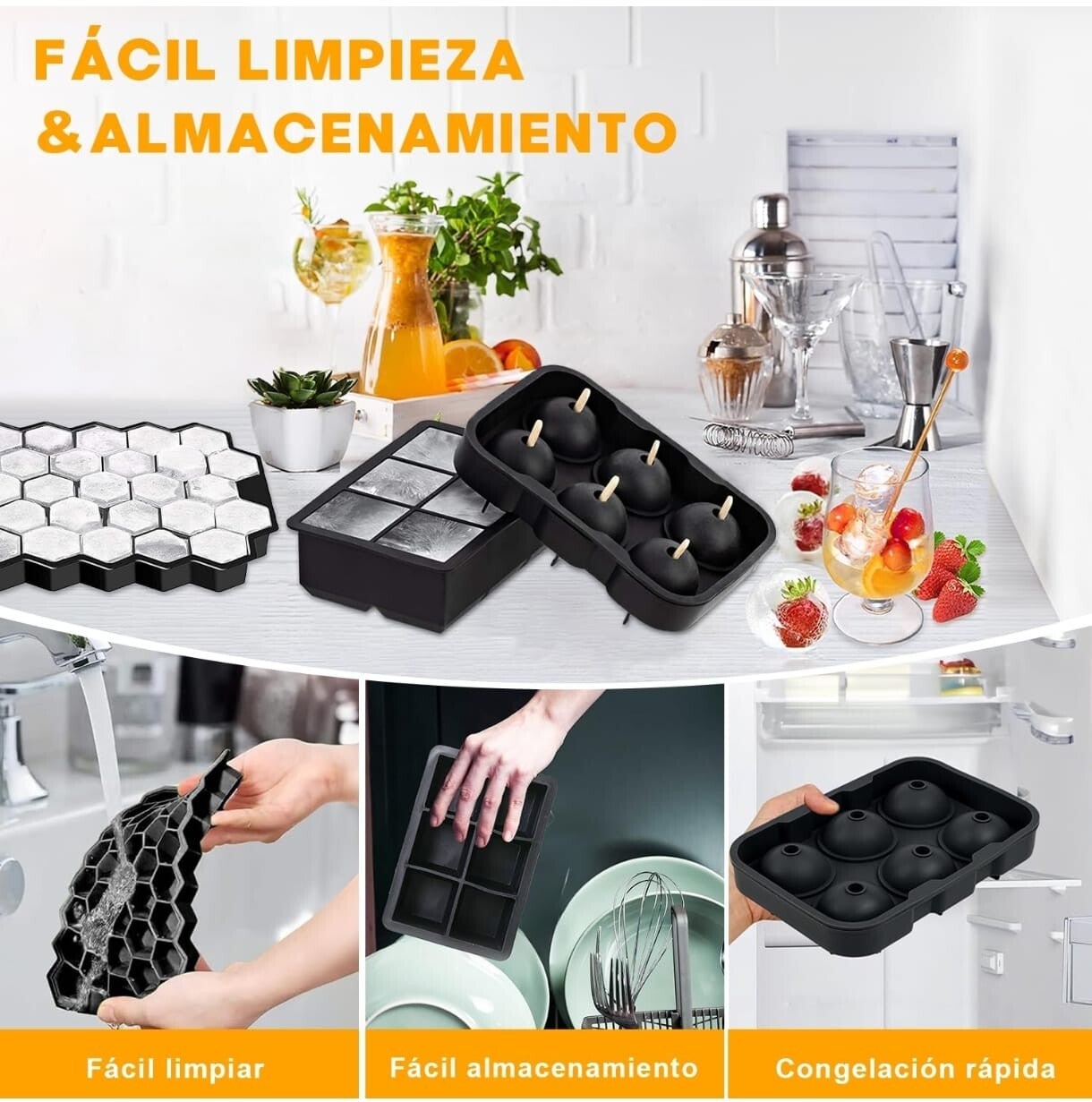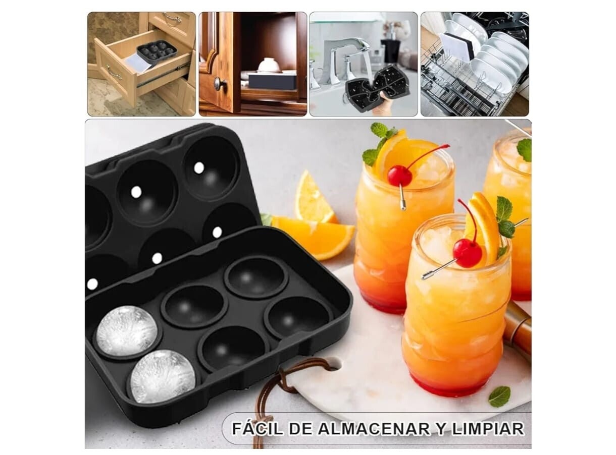 Estos hielos redondos se derriten más lento, lo que significa que tus bebidas se mantendrán frías por más tiempo sin aguarse. 😉 Son ideales para whisky, cocteles o simplemente para tu vaso de agua. 💧